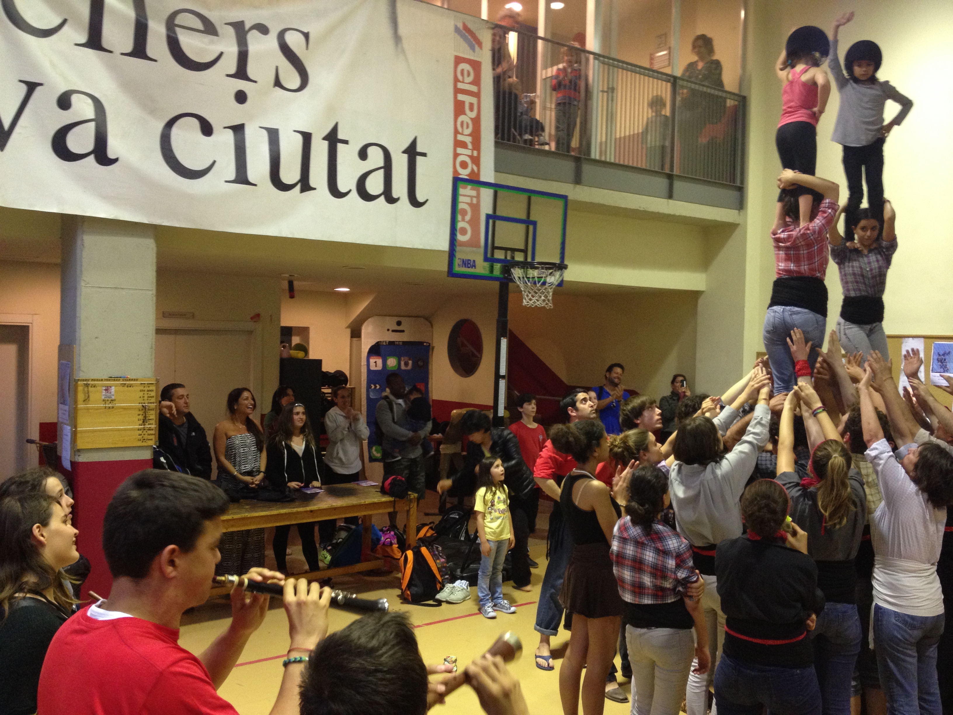 Yesterday i had the opportunity to attend a special Castellers de Barcelona rehearsal, as they were hosts of a group of New Yorkers. The youth football school – oh, sorry, “soccer” school – Manhattan Kickers FC came to Barcelona for their yearly trip, and one of the activities scheduled were castells. They actually knew nothing about castells when they crossed the door of the building, but I bet they will remember that evening most of their life.