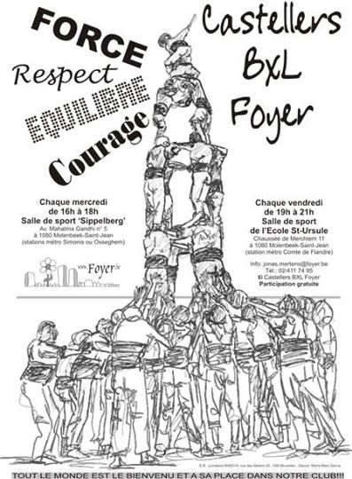 We have prepared a training and a dinner with 150 castellers from Vilafranca and Castellers Bxl Foyer. I think we can learn a lot in this training! To organise that, the Casal Català de Brussel·les has helped us a lot. The training will be on Friday, 6th June on 19:30. The Castellers de Vilafranca have invited us to join the pinya in the Castell that they will made at the Grand Place.