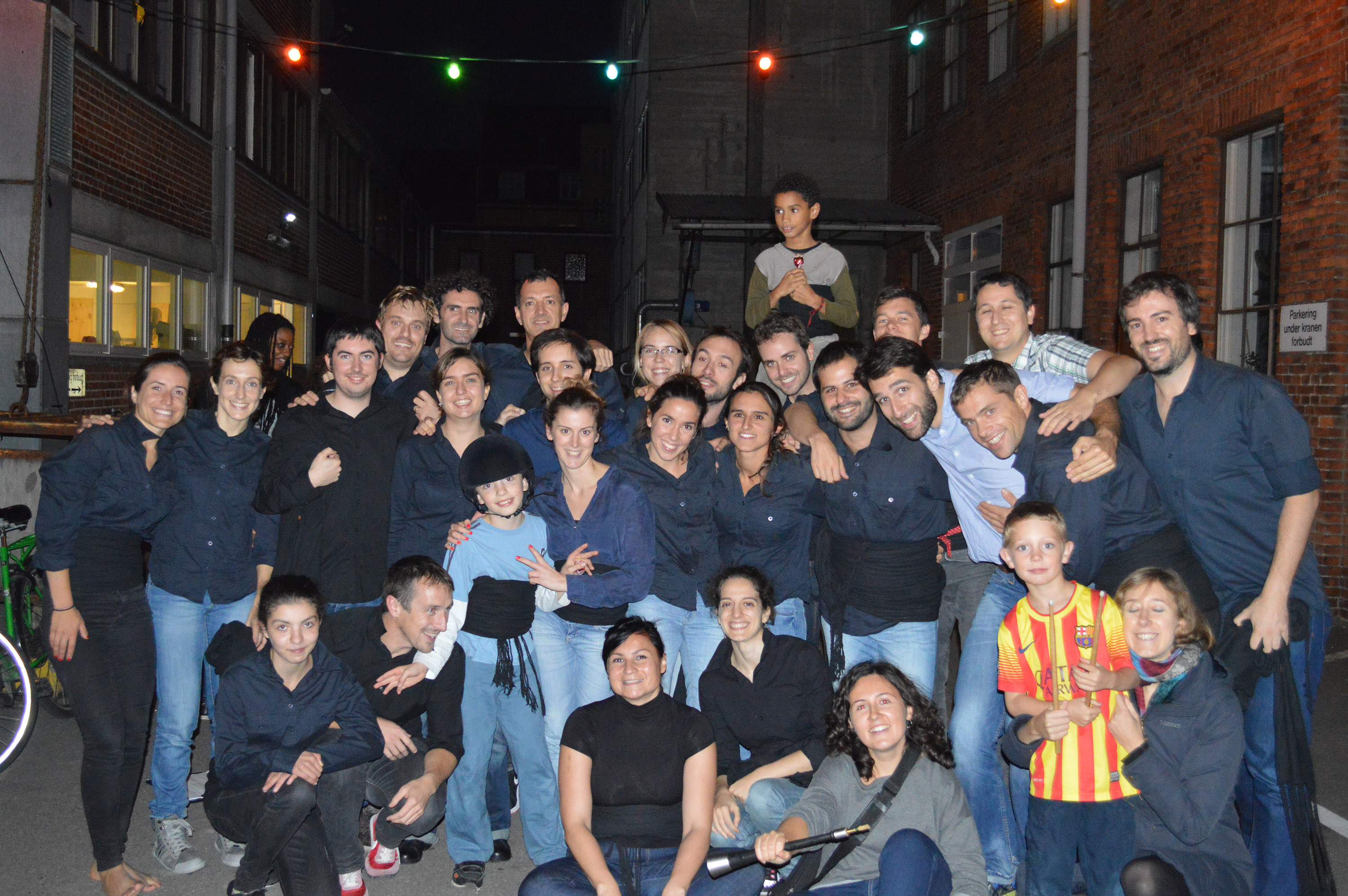 Two of the colles that consolidated on 2014 were Xiquets de Copenhaguen and Xiquets de l’Alster, from Hamburg. The geographic proximity of the two cities (less than an hour by plane) made possible some collaboration between the colles. Xiquets de l’Alster, named by the Alster river – with its source at the outskirts of Hamburg and its mouth at the Elba river -, started operating on summer 2013 and now they have 20 “permanent” people attending their weekly rehearsals, plus some “casuals“. Alster is one of the few colles who dared to translate the casteller lingo. Although, according to Núria Gratacós, cap de músics – head of musicians -, it still has to be profiled. “For instance – says she – we translated ‘baixos‘ like ‘the ones who are underneath‘, but it’s a very rude expression with reminiscences of the 30’s on Germany”. So they decided to explain the basics in German but the commands are given in Catalan. By the way, they translated ‘pinya‘ like ‘stutzzapfen‘, which means something like ‘supports‘. Gratacós also explains that material is being gathered in order to make a documentary about the colla. By the moment, they have already performed on four occasions and build castells of 5 storeys, which they will try to consolidate this 2015.